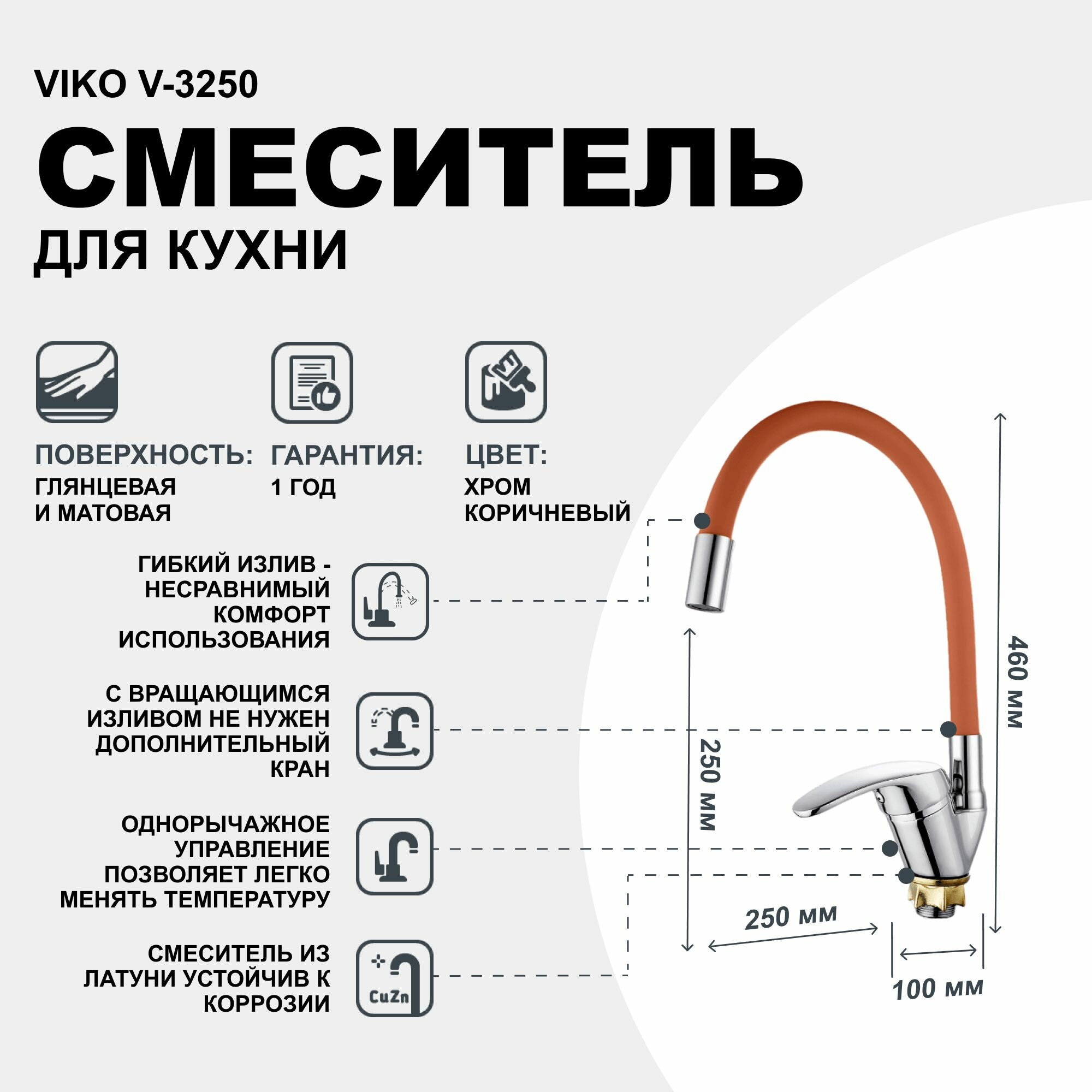 Смеситель для кухонных моек Viko Хром, коричневый (V-3250)