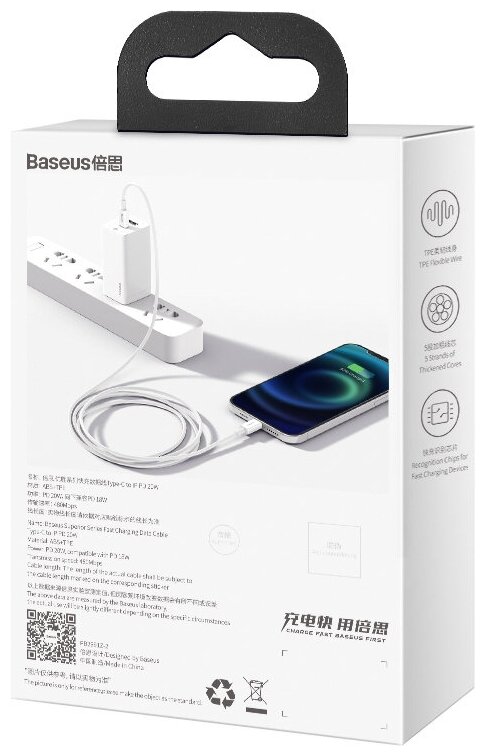 Кабель Baseus Superior Series Fast Charging (CATLYS-C02), USB Type-C - Lightning, 20W, 2м, белый интересное: