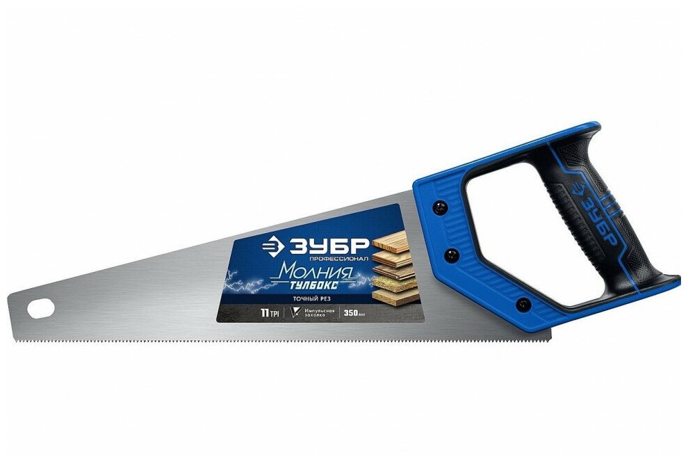 Зубр Ножовка компактная пила "молния-тулбокс" 350 мм, 11 Tpi, прямой зуб, точный рез, импульсная заа .
