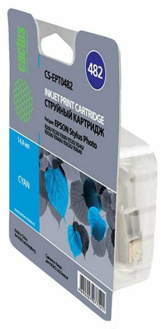 Картридж струйный Cactus CS-EPT0482 T0482 голубой (14.4мл) для Epson Stylus Photo R200/R220/R300/R320/R340/RX500/RX600/RX620/RX640
