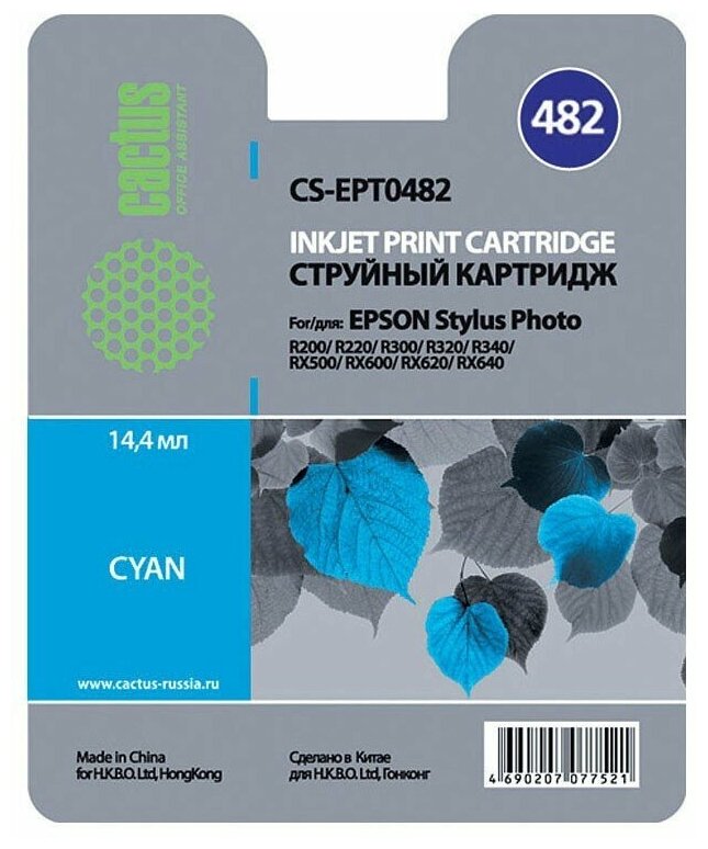 Картридж Cactus CS-EPT0482 14.4ML Cyan Stylus Photo R200/R220/R300/R320/R340