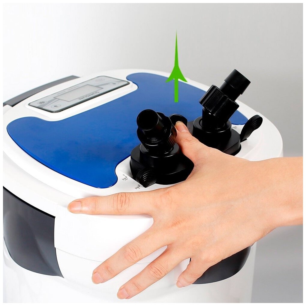 | Дополнительная информация | Удобные краны плавной регулировки потока на заборной и выпускной линиях снабжены пробками для стартового заполнения фильтра водой и струбцинами для крепления на стекле любой толщины |