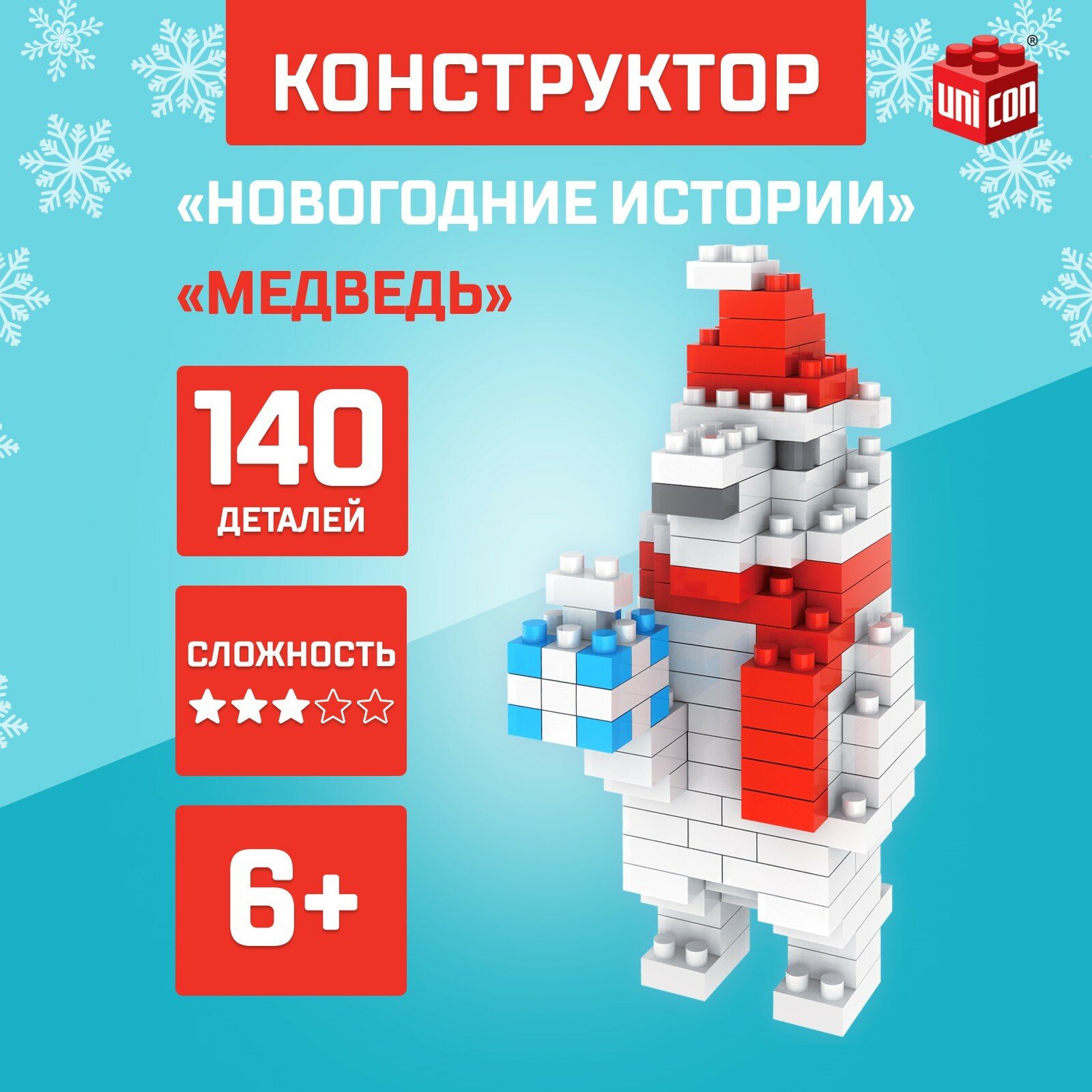 Конструктор Unicon "Новогодние истории", 140 деталей, медведь (9110)