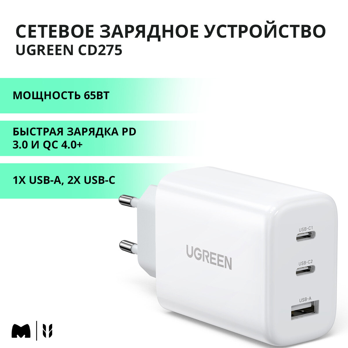 Ниже Вы можете прочитать отзывы на Сетевое зарядное устройство Ugreen CD 275 USB-A+2ХUSB-C, 65W, цвет белый (90496), ознакомится с подробными характеристиками, посмотреть интересные обзоры и фотографии на Сетевое зарядное устройство Ugreen CD 275 USB-A+2ХUSB-C, 65W, цвет белый (90496).