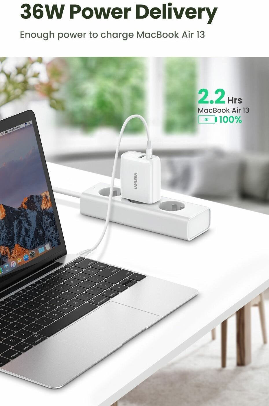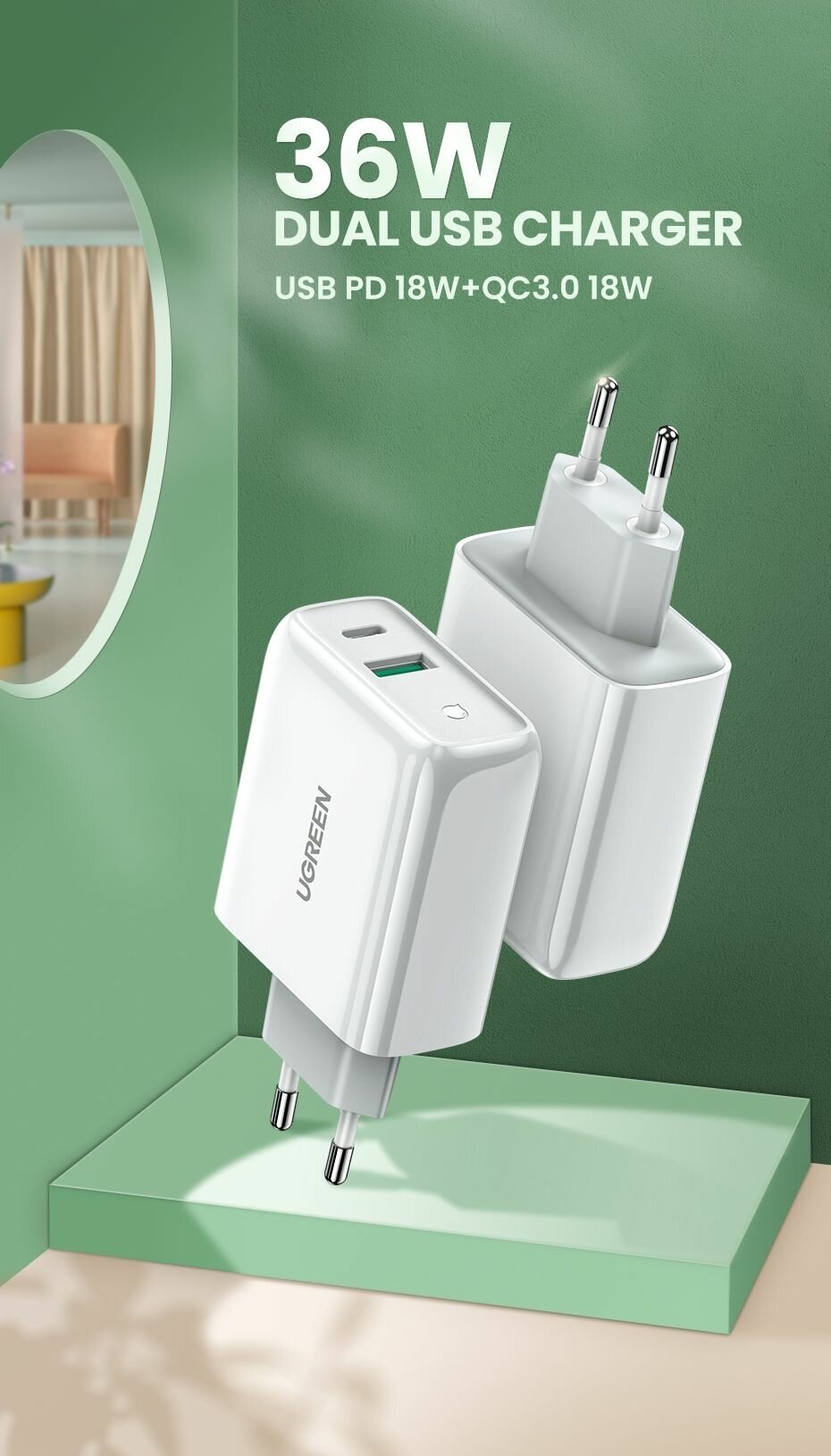 Сетевое зарядное устройство UGreen CD170, белый