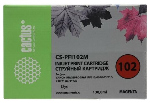 Cactus Картридж струйный Cactus CS-PFI102M пурпурный (130мл) для Canon IP iPF500/iPF600/iPF700/MFP M40/iPF765/LP17/LP24