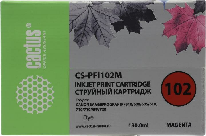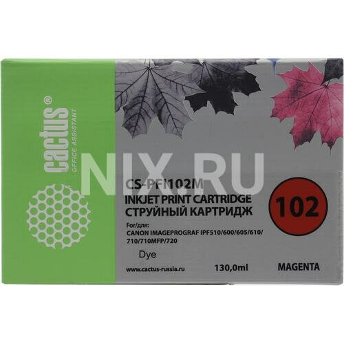 Купить Картридж струйный CACTUS (CS-PFI102M) для CANON iPF500/510/F600/605/650/700, пурпурный, 130 мл