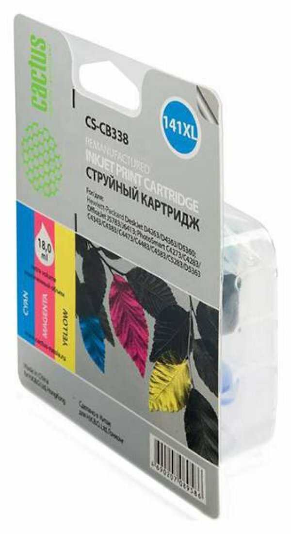 Картридж Cactus струйный №141XL многоцветный (18мл) для HP DJ D4263/D4363/D5360/DJ J5783/J6413/PS C4273/C4283/C4343/C4383/C4473/C4483/C4583/C5283/D5363