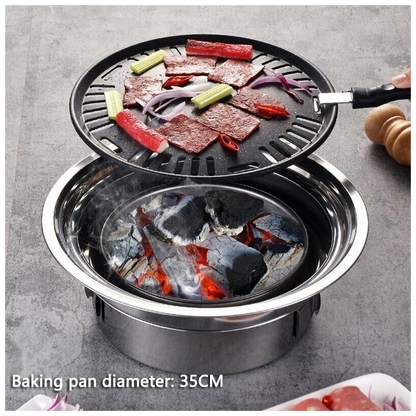 Гриль для барбекю портативный, угольный/ гриль туристический из нержавеющей стали 2 в 1 интересное: