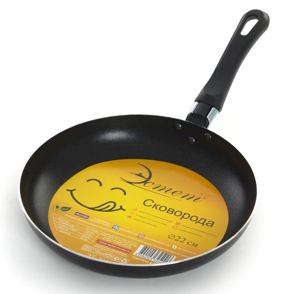 Сковорода штампованная d=22см, д/всех плит (кроме индукции) ЭТ-70496 Эстет интересное: