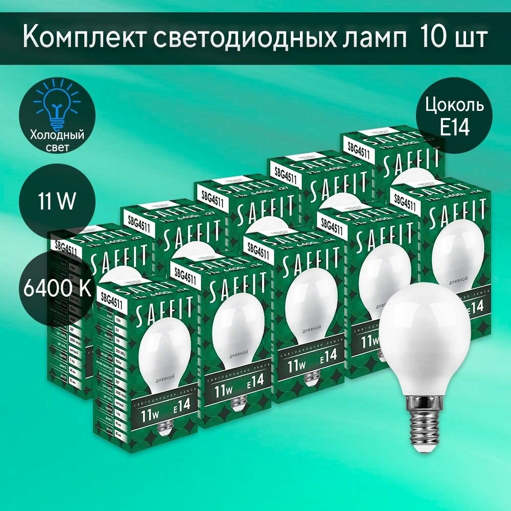 Saffit (10 шт.) Лампа светодиодная Saffit E14 11W 6400K матовая SBG4511 55140