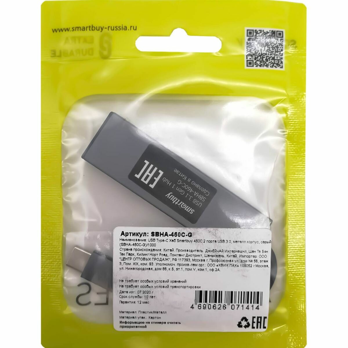 Type-C HUB Smartbuy 460С 2 порта USB 3.0, серый, SBHA-460С-G