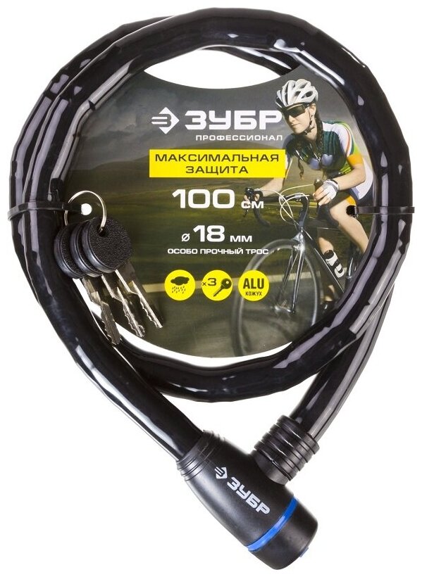 Купить ЗУБР 1000 мм, d 18 мм, 3 ключа, тросовый замок, Профессионал (37260-100)