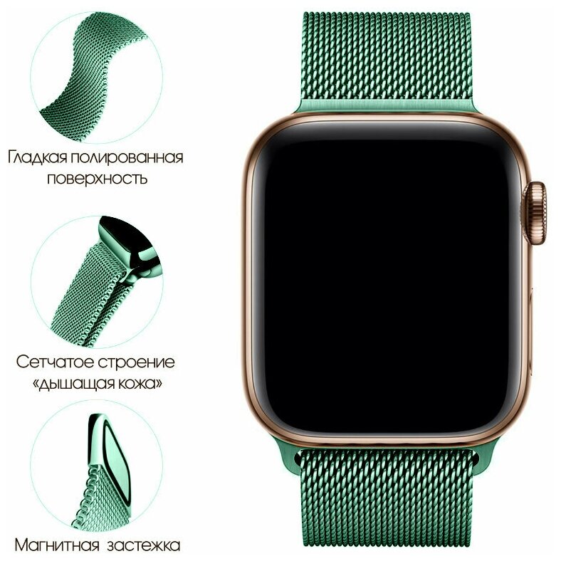 СохранитьМеталлический ремешок на Apple Watch 1-7, SE 38-40-41 mm / Зеленый ремешок миланская петля для умных смарт часов Эпл Вотч 1, 2, 3, 4, 5, 6, 7 и СЕ интересное: