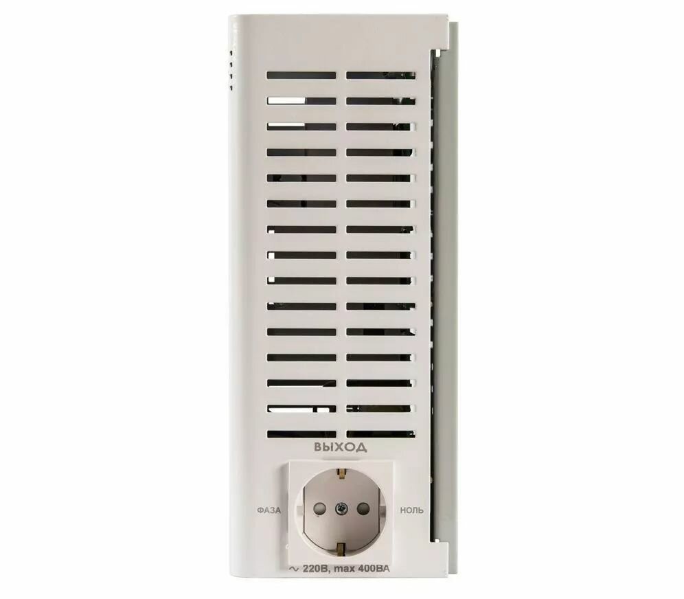 | Дополнительная информация | номинальная мощность нагрузки: 500 ВА; мин. выходное напряжение (фазное): 216 В; макс. входное напряжение (рабочее): 300 В; макс. входная частота: 53 Гц; мин. входная частота: 47 Гц; количество выходных розеток (общее): 1 шт. |