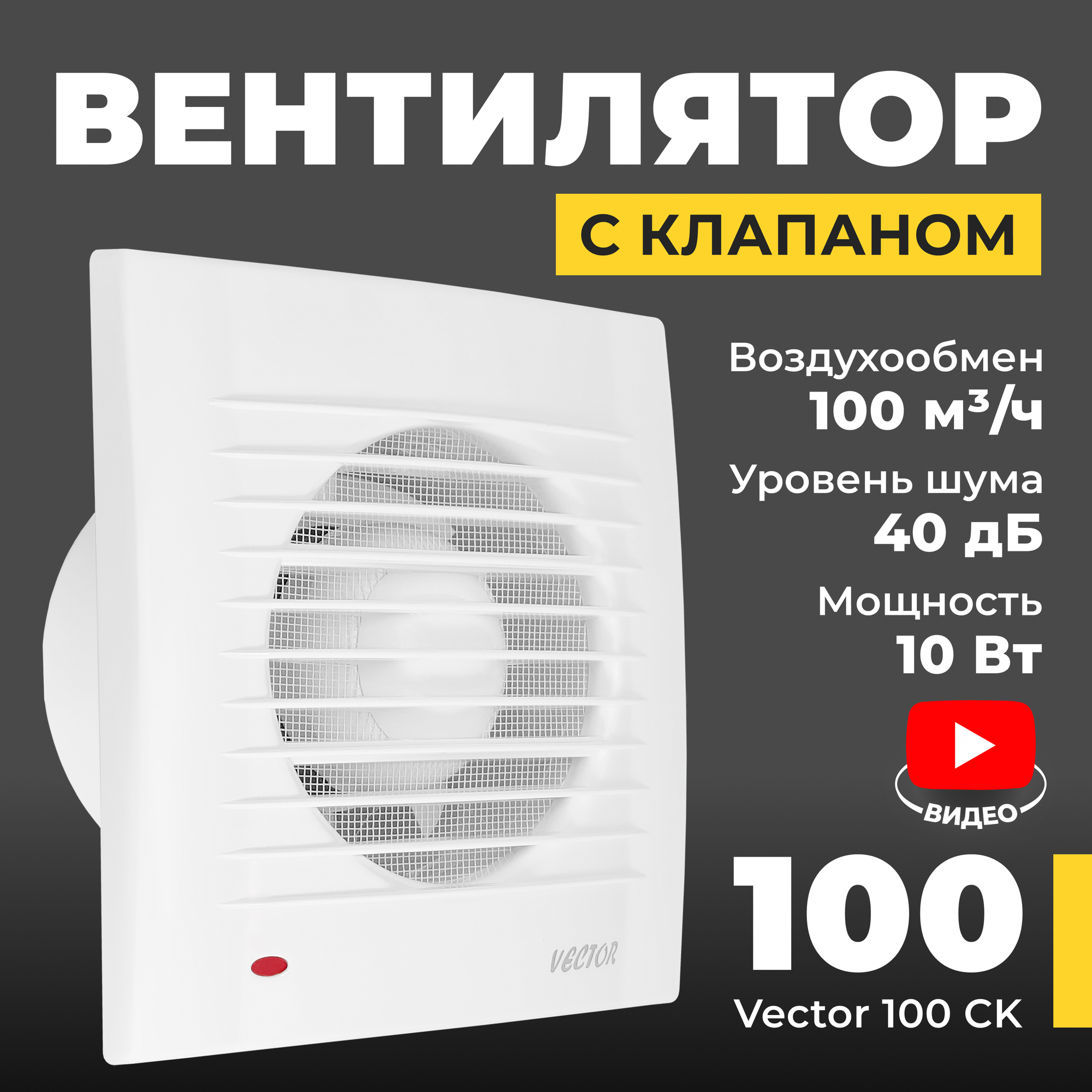 Вентилятор вытяжной Vector 100СК с обратным клапаном, 100 мм., воздухообмен 100м3/ч, 15 Вт, белый интересное: