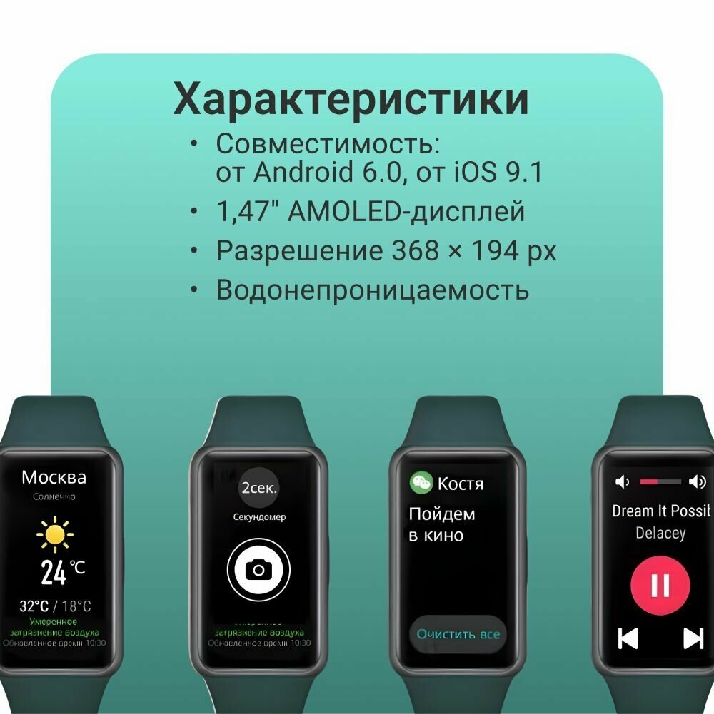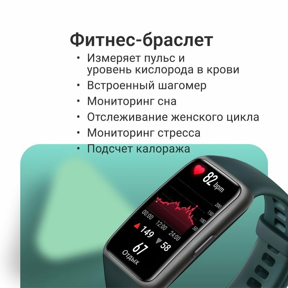 Умные смарт часы наручные женские мужские, фитнес браслет HUAWEI Band 6 Green интересное: