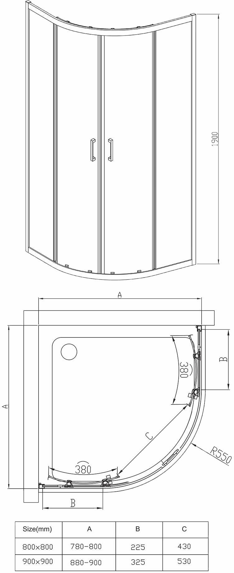 Душевой уголок Alhpa VSQ-3AL900MT, 900*900, хром, стекло текстурное, без поддона