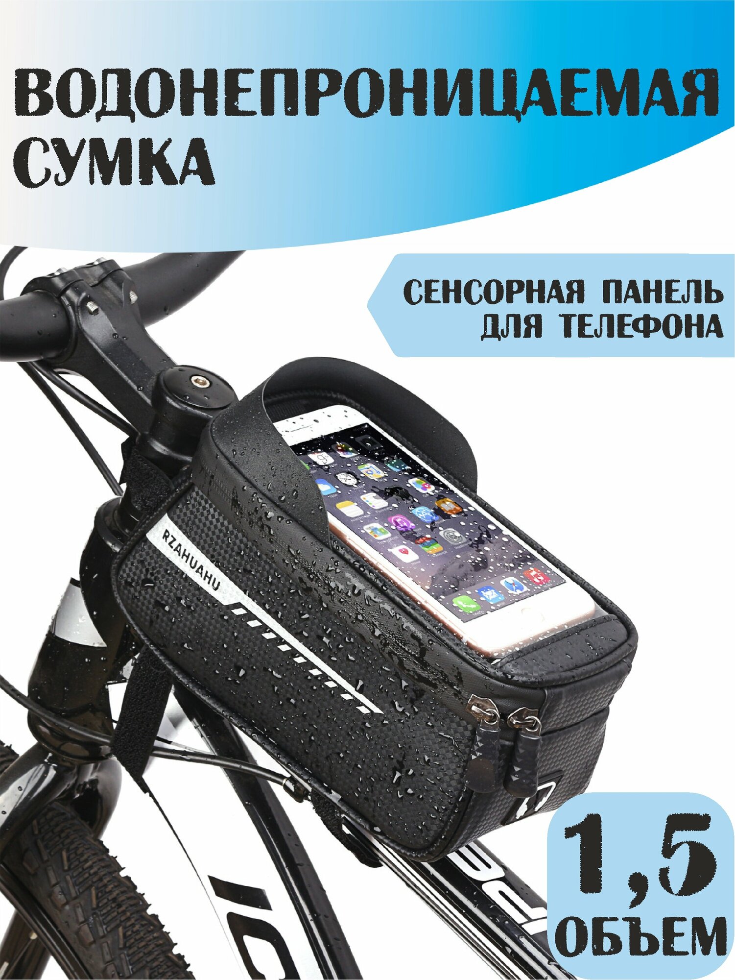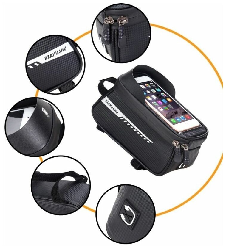 | Дополнительная информация | сумка для велосипеда, сумка велосипедная, сенсорный экран, водонепроницаемость, возможность регулировки размера, крепление для габаритного фонаря, петля для подвешивания, чехол для смартфона |