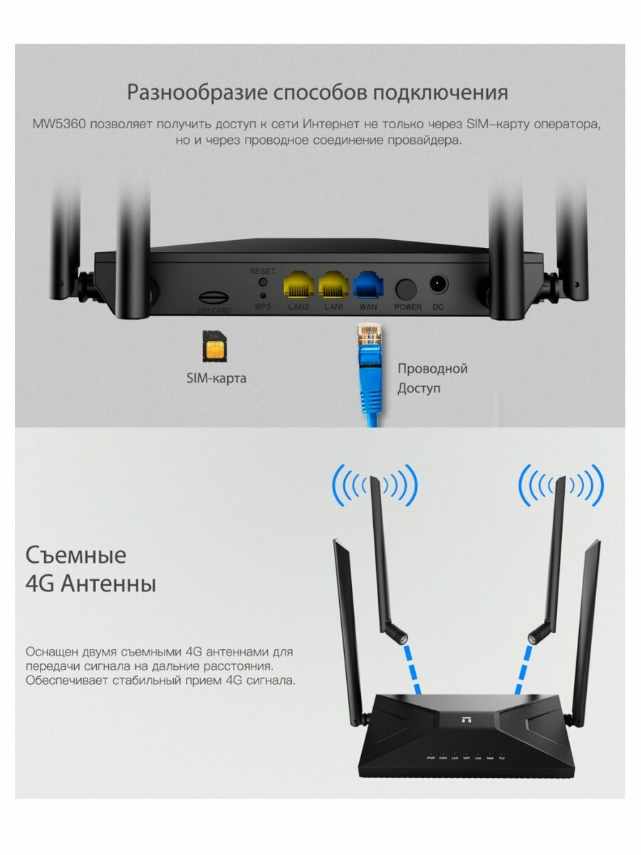 Wi-Fi 4G LTE Маршрутизатор NETIS MW5360 интересное: