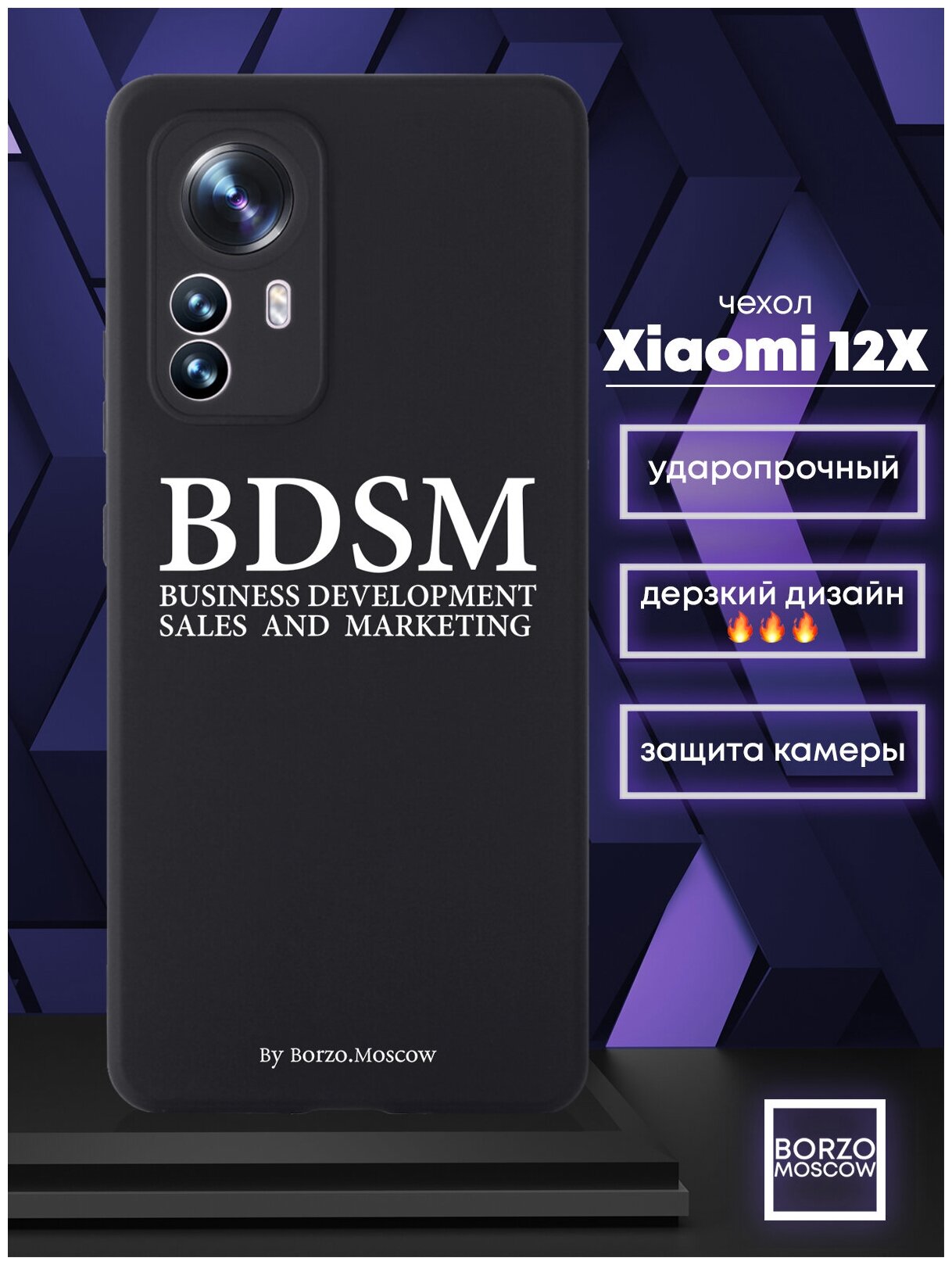 Купить Черный силиконовый чехол Borzo.Moscow для Xiaomi 12X BDSM (business development sales and marketing для Сяоми 12 Икс