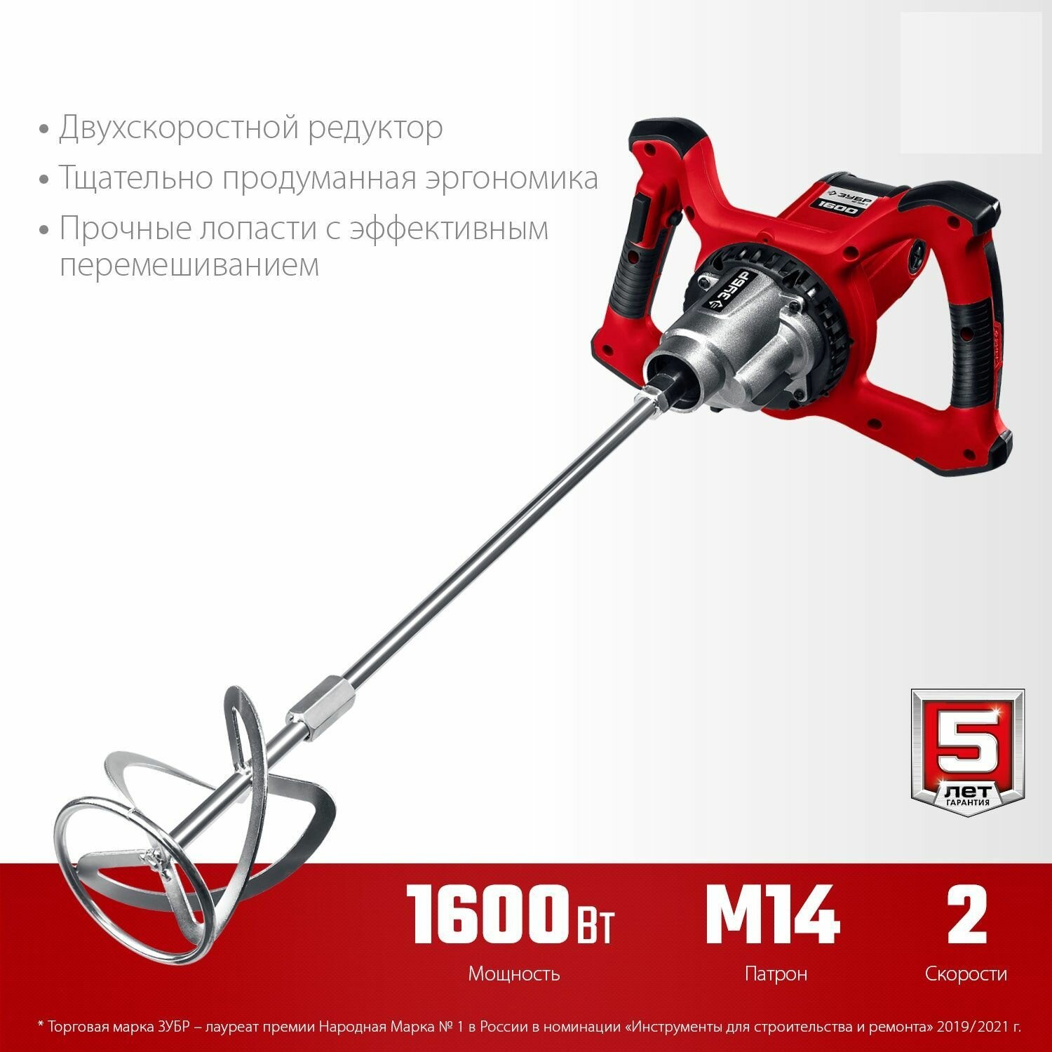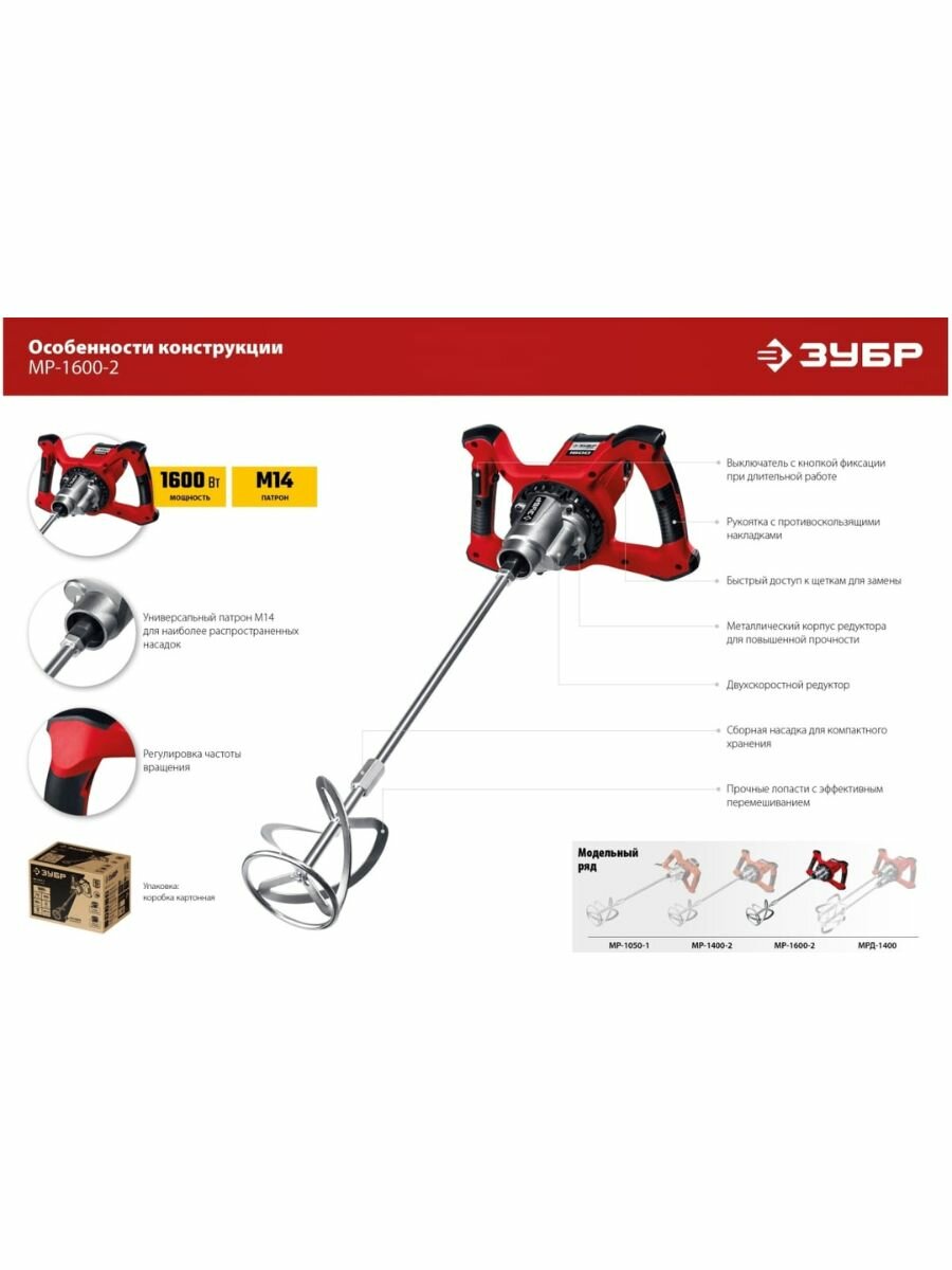 Строительный миксер ЗУБР МР-1600-2, 1600 Вт
