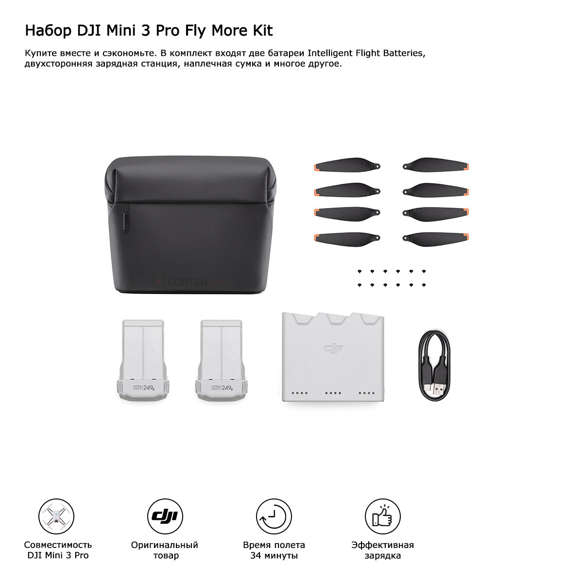 Комплект аксессуаров DJI Mini 3 Pro Fly More Kit интересное: