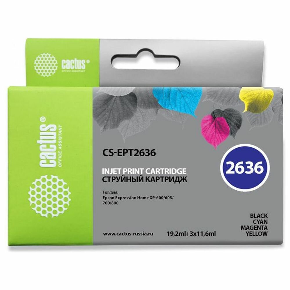 Картридж CACTUS CS-EPT2636 для Epson Expression Home XP-600/605/700 4 картриджа многоцветный