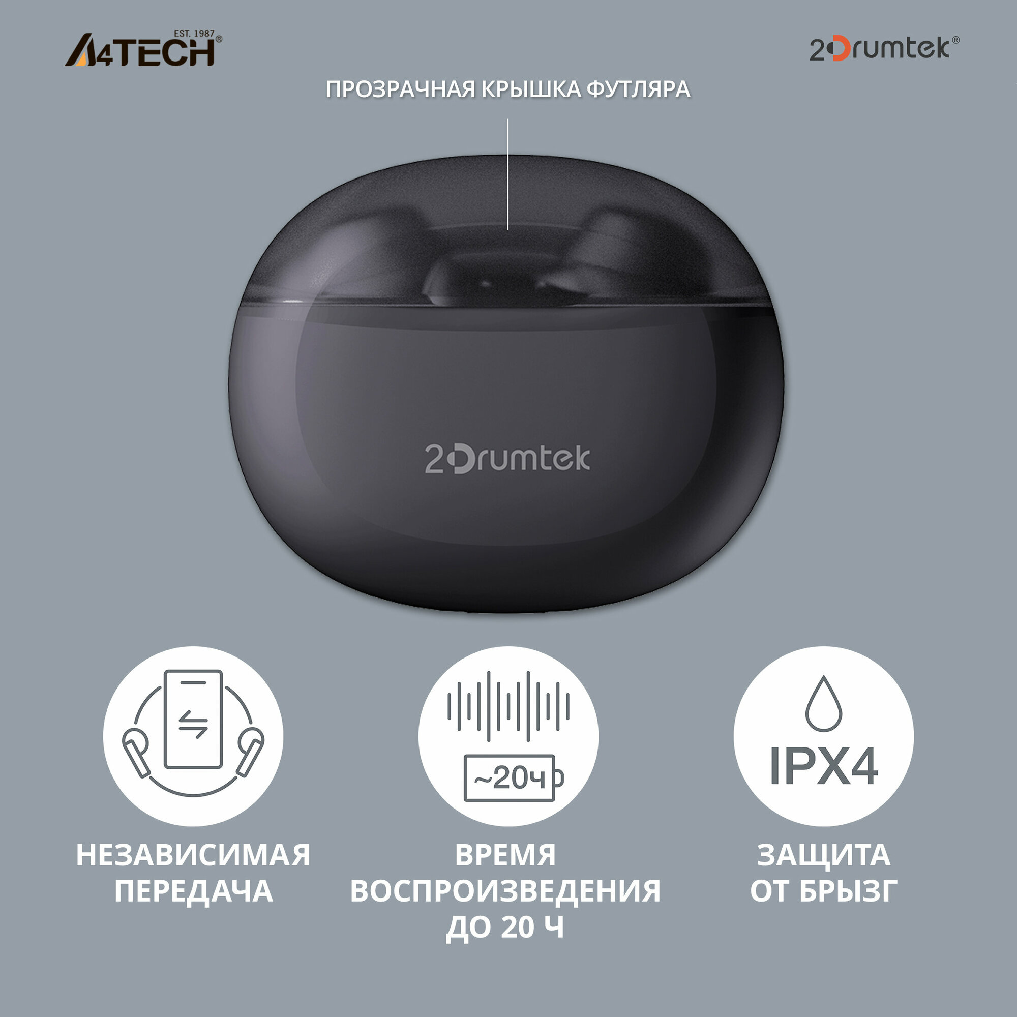 Наушники A4Tech 2Drumtek B27 TWS пепельно-серый