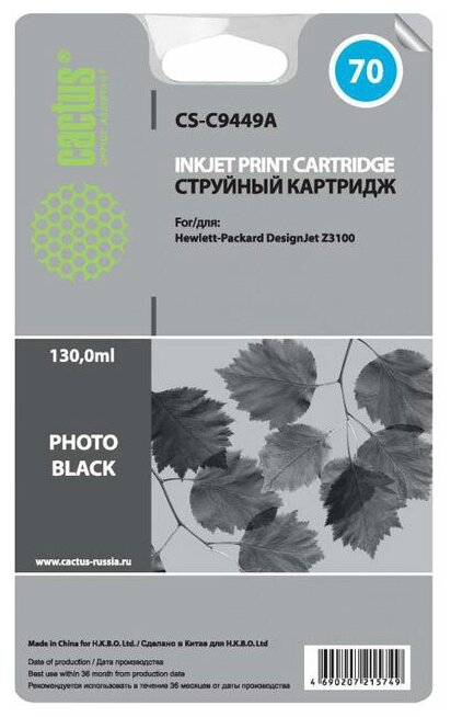 Ниже Вы можете прочитать отзывы на Картридж струйный CACTUS CS-C9449A №70 черный (130мл) для HP DJ Z3100, ознакомится с подробными характеристиками, посмотреть интересные обзоры и фотографии на Картридж струйный CACTUS CS-C9449A №70 черный (130мл) для HP DJ Z3100.