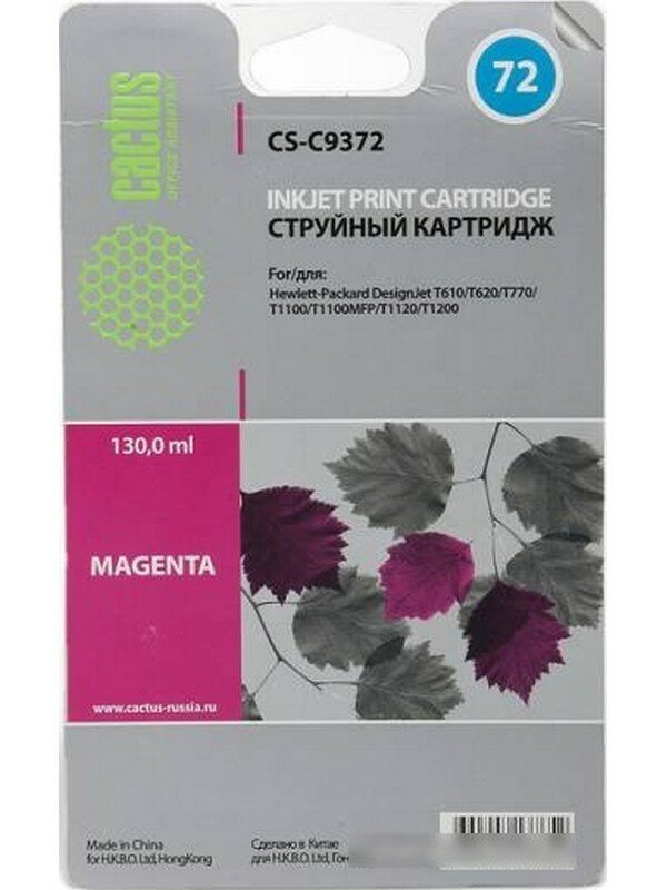 Cartridge ink Cactus CS-C9372 №72 magenta photo (130ml) for HP DJ T610/T620/T770/T1100/T1100/T1120/T