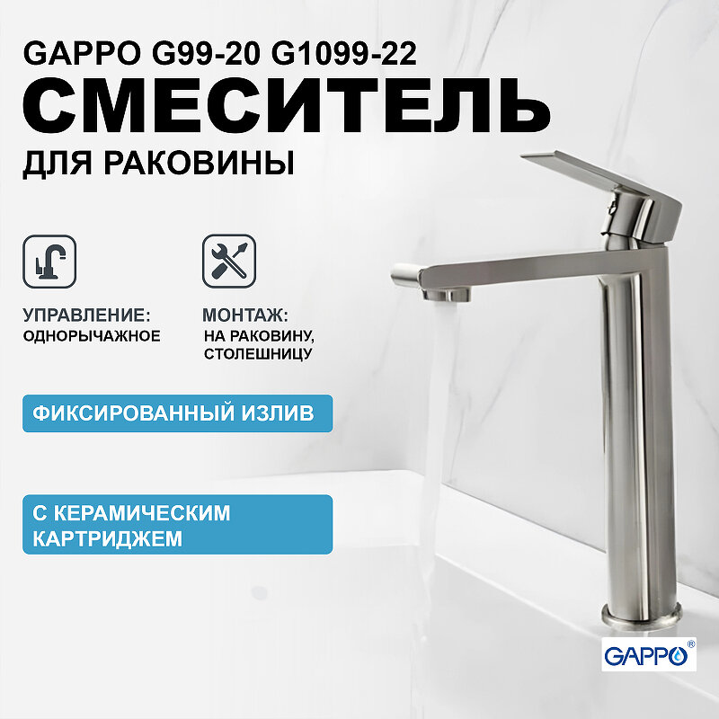 СохранитьG1099-22 Смеситель для умывальника Gappo высокий, сатин интересное: