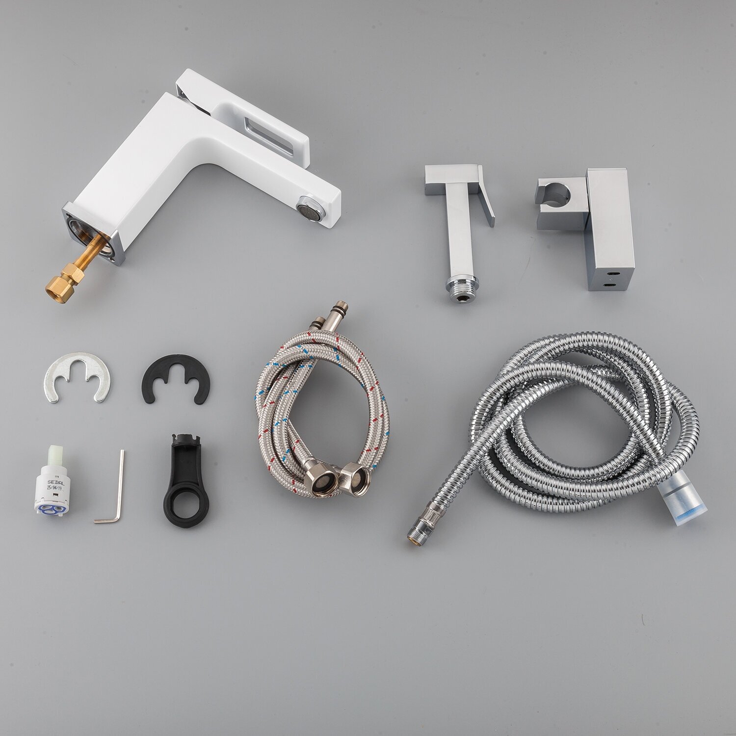 Смеситель для умывальника 35к G1017-1 GAPPO литой, с гигиенической лейкой, белый-хром*