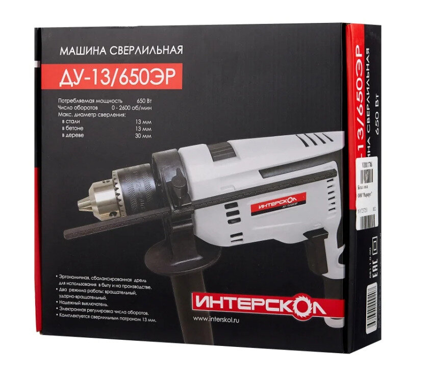 Ударная дрель Интерскол ДУ-13/650ЭР new, 650 Вт интересное: