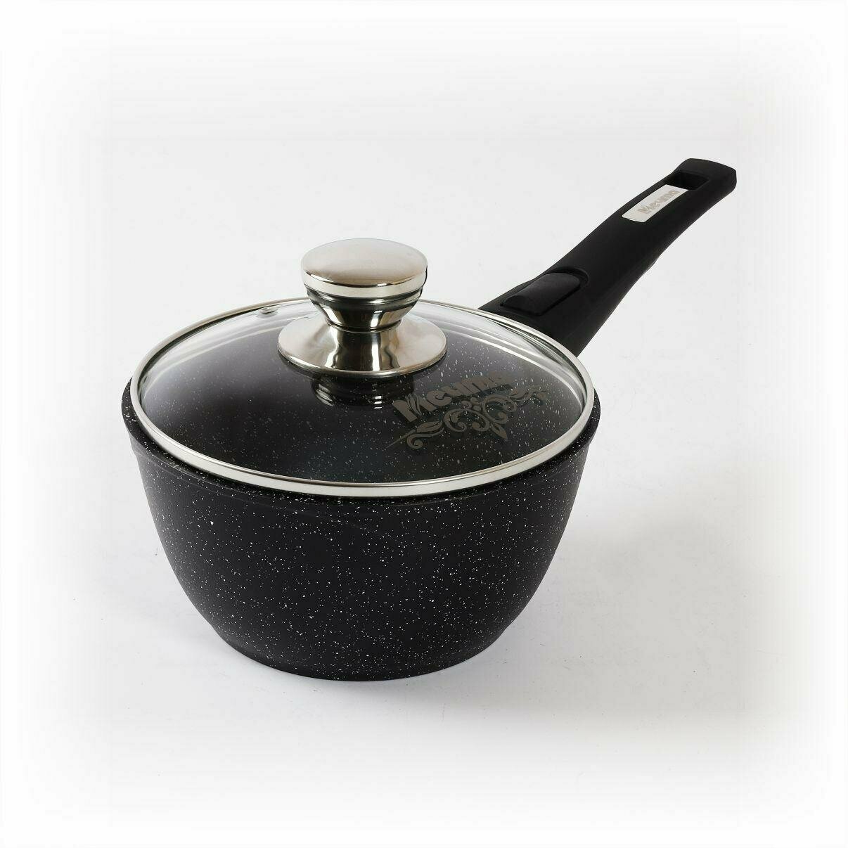Ковш алюминий, антипригарное покрытие, 1.7 л, крышка стекло, бакелитовая ручка, индукция, Мечта, Гранит black Induction Pro, 82802И