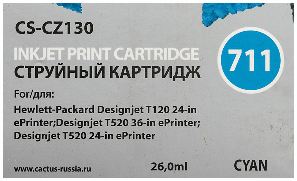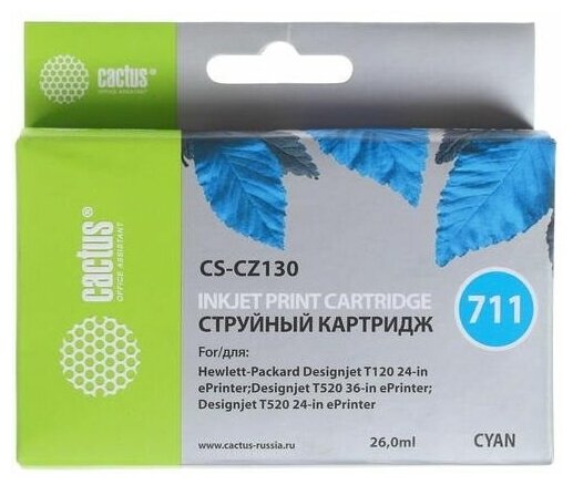Купить Картридж струйный Cactus CS-CZ130 №711 голубой (26мл) для HP DJ T120/T520