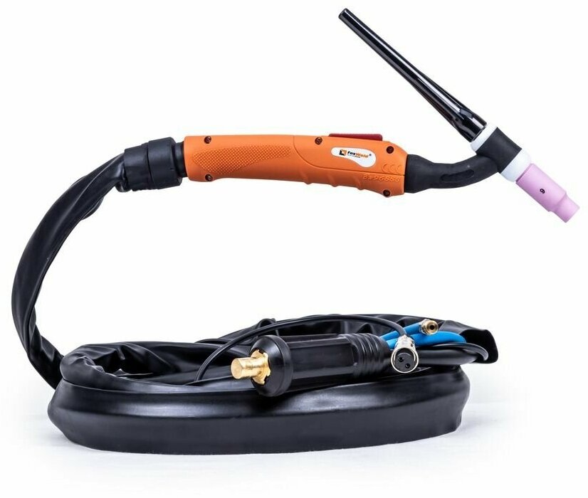 Горелка сварочная TIG-26 / UNOTIG-26-FLEX / 4 Метра / разъем 35 мм / с кнопокой для аргонно-дуговой сварки / воздушное охлаждения / FoxWeld