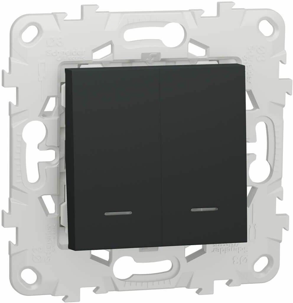 Купить Выключатель 2-клавишный 2 модуля с подсветкой 2 х схема 1а Unica NEW Schneider Electric антрацит NU521154N