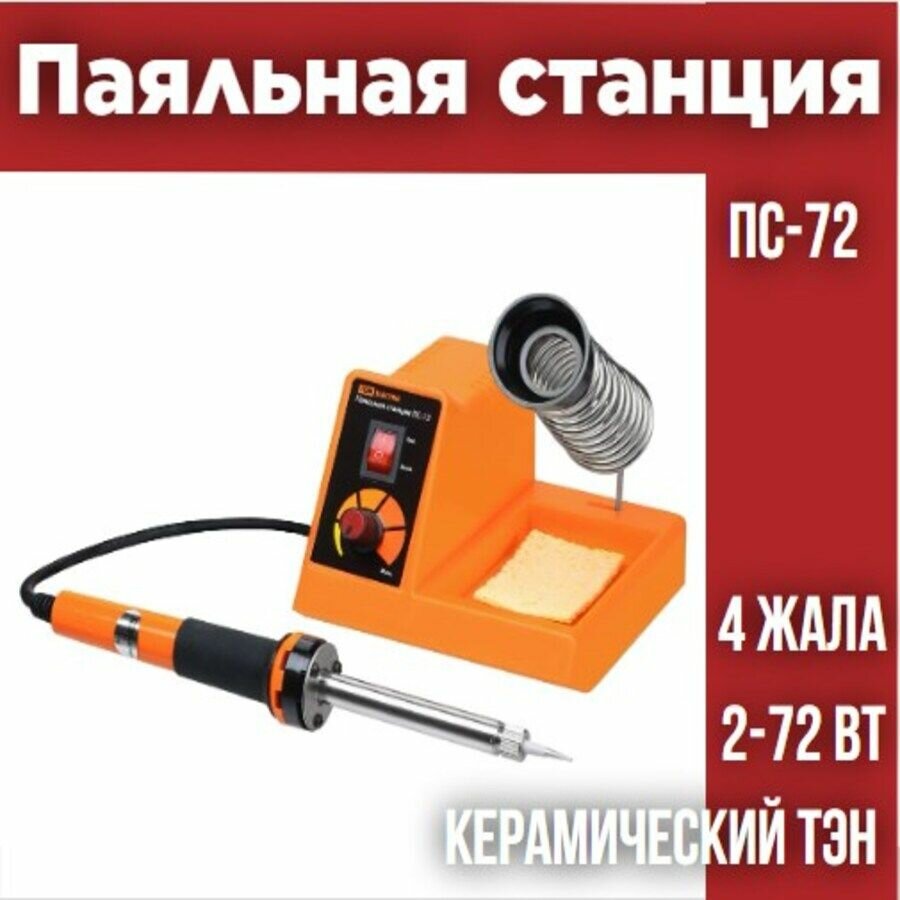 Паяльная станция ПС-72, 2-72Вт, 230В, 160-500С, керамический ТЭН, 4 жала в компл., регулятор, Алмаз