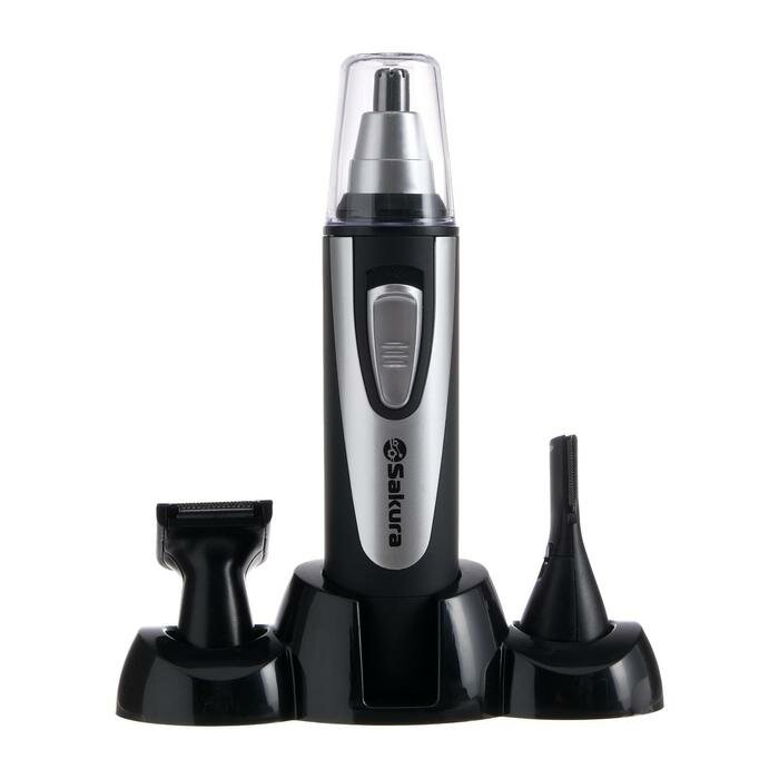 Купить Триммер для волос Sakura SA-5522BK, 4 насадки, 1хАА, чёрный/серебристый (1шт.)