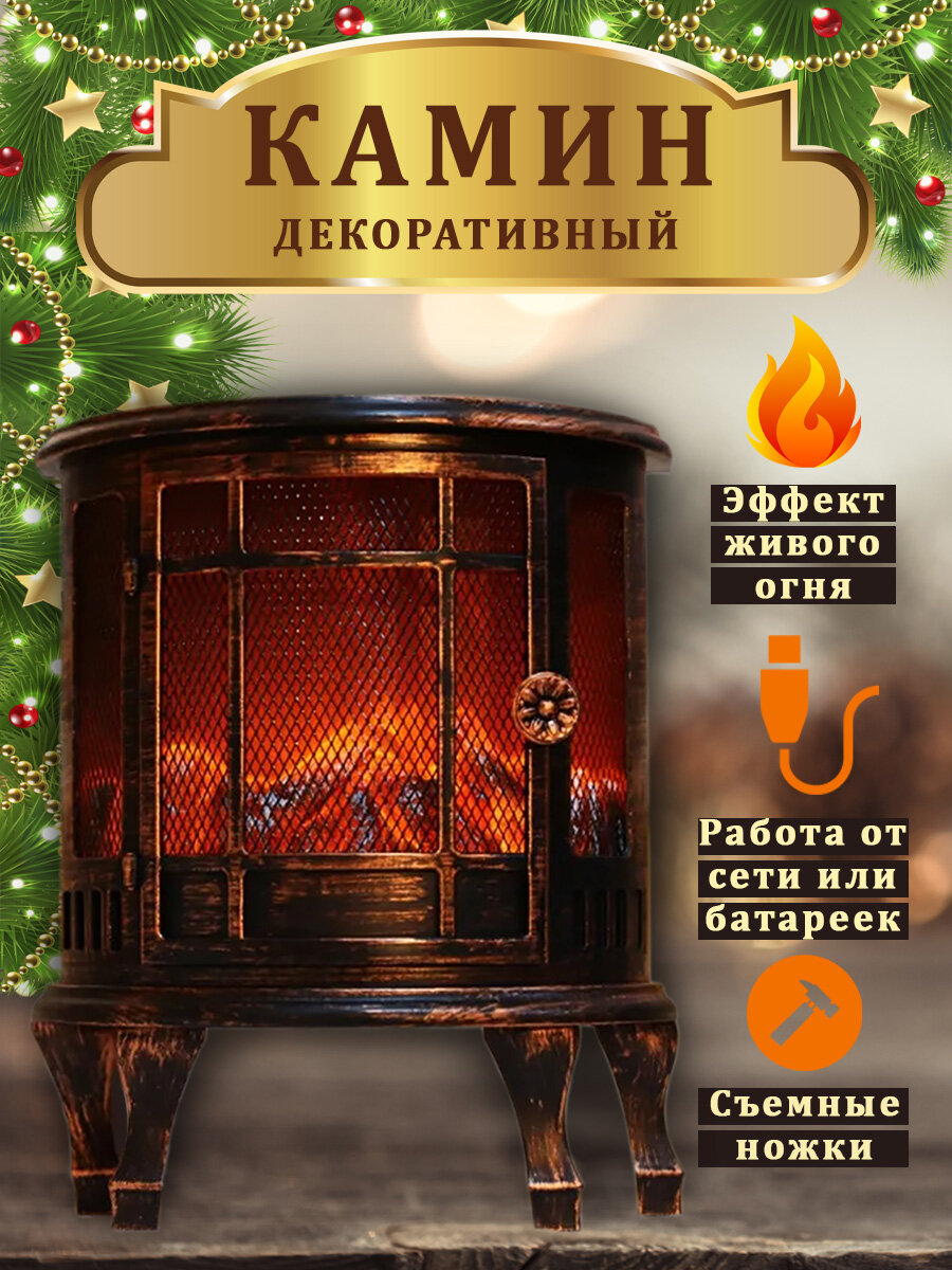 Купить Светодиодный камин-светильник USB Neon-Night "Винтаж-мини" с эффектом живого огня, бронзовый / новогодние подарки / скидки / распродажа