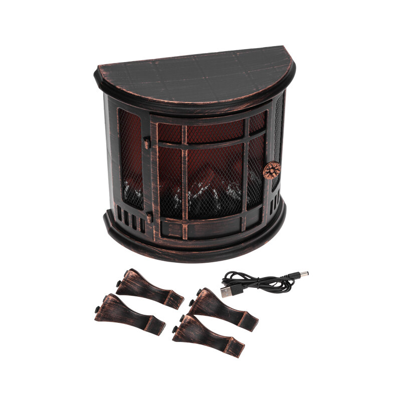 Светодиодный камин "Винтаж мини" с эффектом живого огня 24.8x12.7x30 см, батарейки 3xС (не в комплекте), с USB, бронзовый