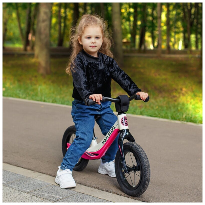 Купить Детский Беговел MAXISCOO на магниевой раме Comet (2022) Делюкс Плюс Надувные Колеса 12 Розовый с Белым