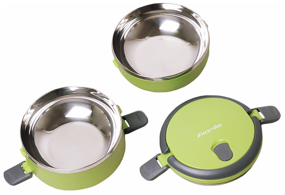 Ланч бокс двойной 1400 мл. круглый Kamille КМ-2106 (пластик, нержавеющая сталь) (2106 / зеленый) интересное: