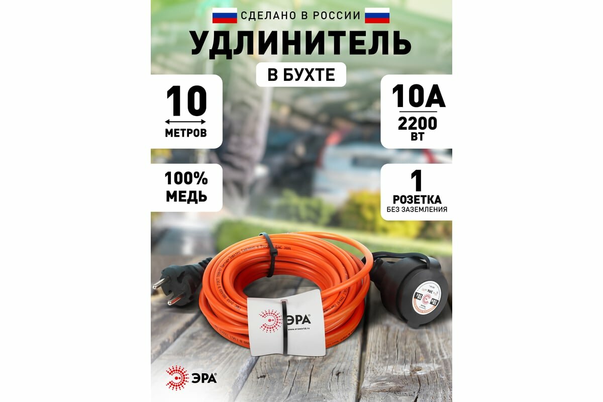 Удлинитель-шнур ЭРА Б0046805, 1 розетка, б/з, 10А оранжевый 10 м 1 м² 1
