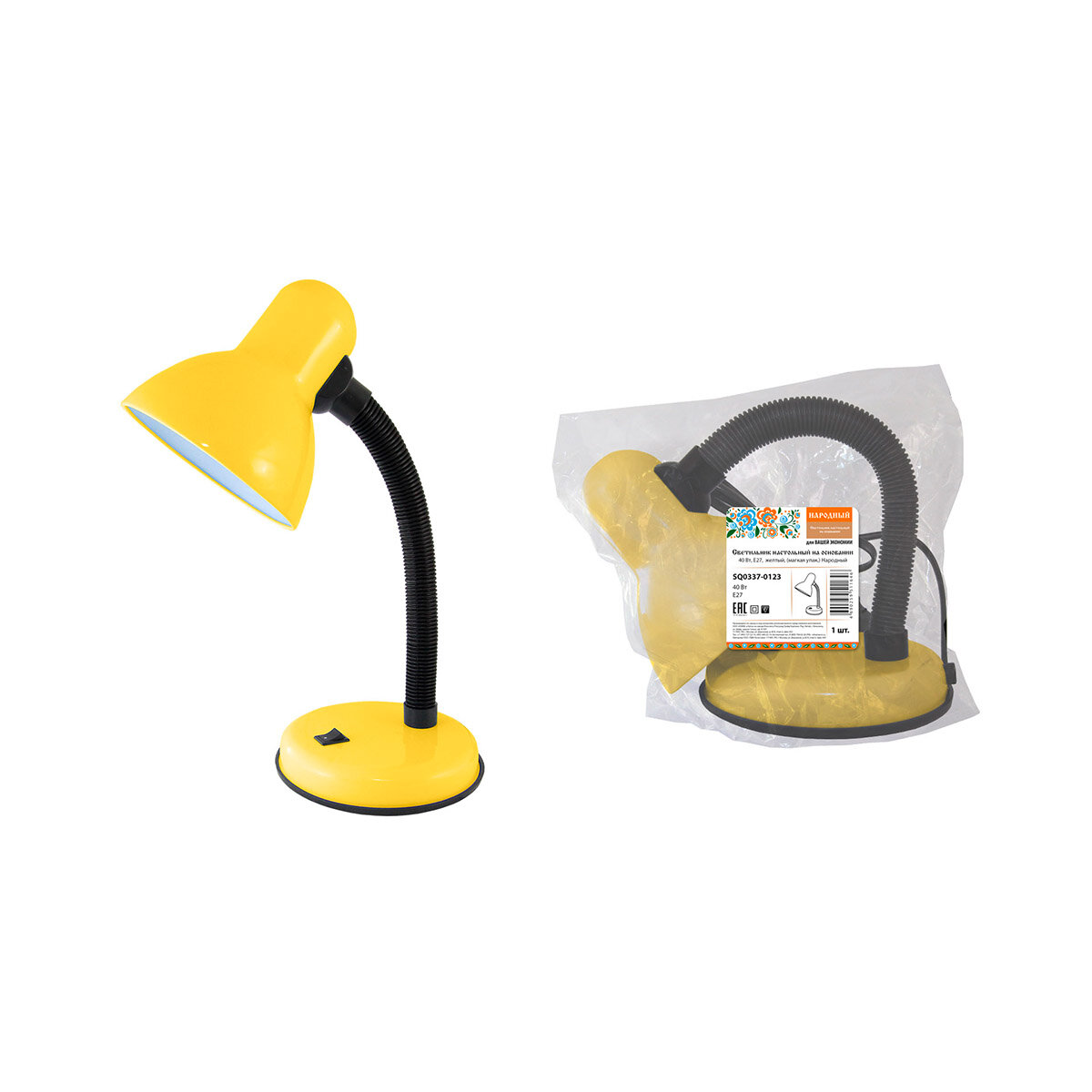 Светильник настольный на основании 40Вт, E27, желтый, (мягкая упак.) Народный TDM SQ0337-0123 (1 шт.) интересное: