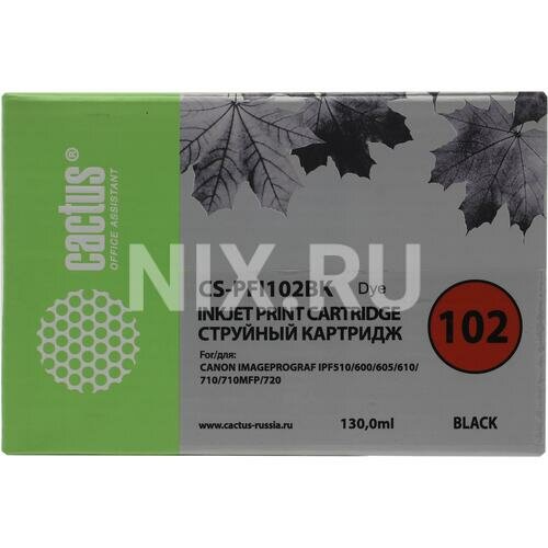 Cactus Картридж струйный Cactus CS-PFI102BK черный (130мл) для Canon iPF500/iPF600/iPF700/ MFP M40/iPF765/LP17/LP24