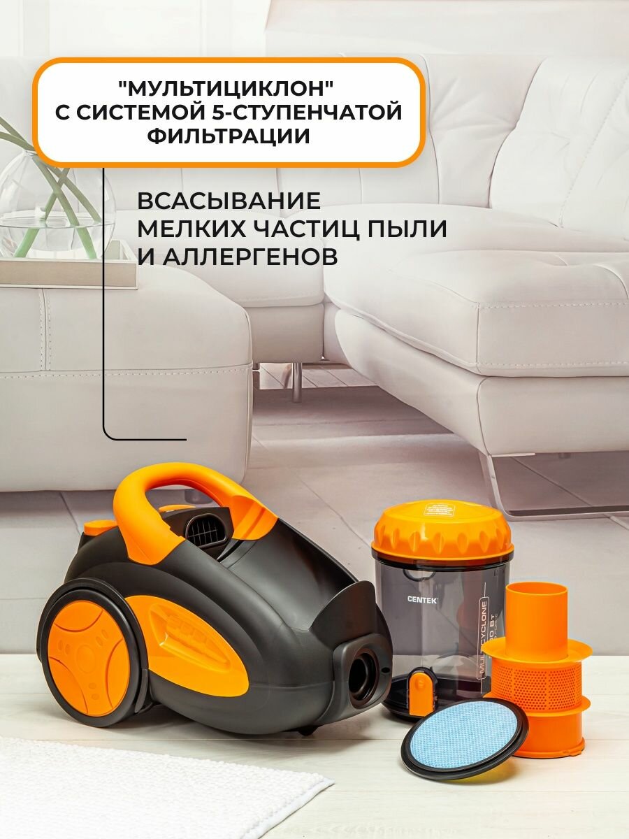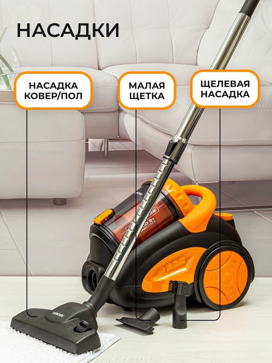 Пылесос Centek CT-2520 Orange, 2200/400 Вт, 2 л, мультициклон, оранжевый Centek 9910751 .