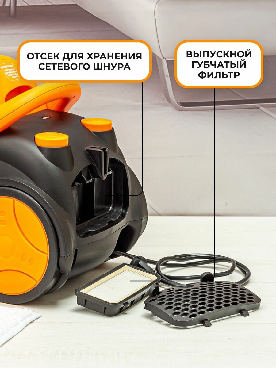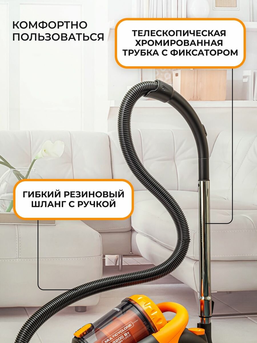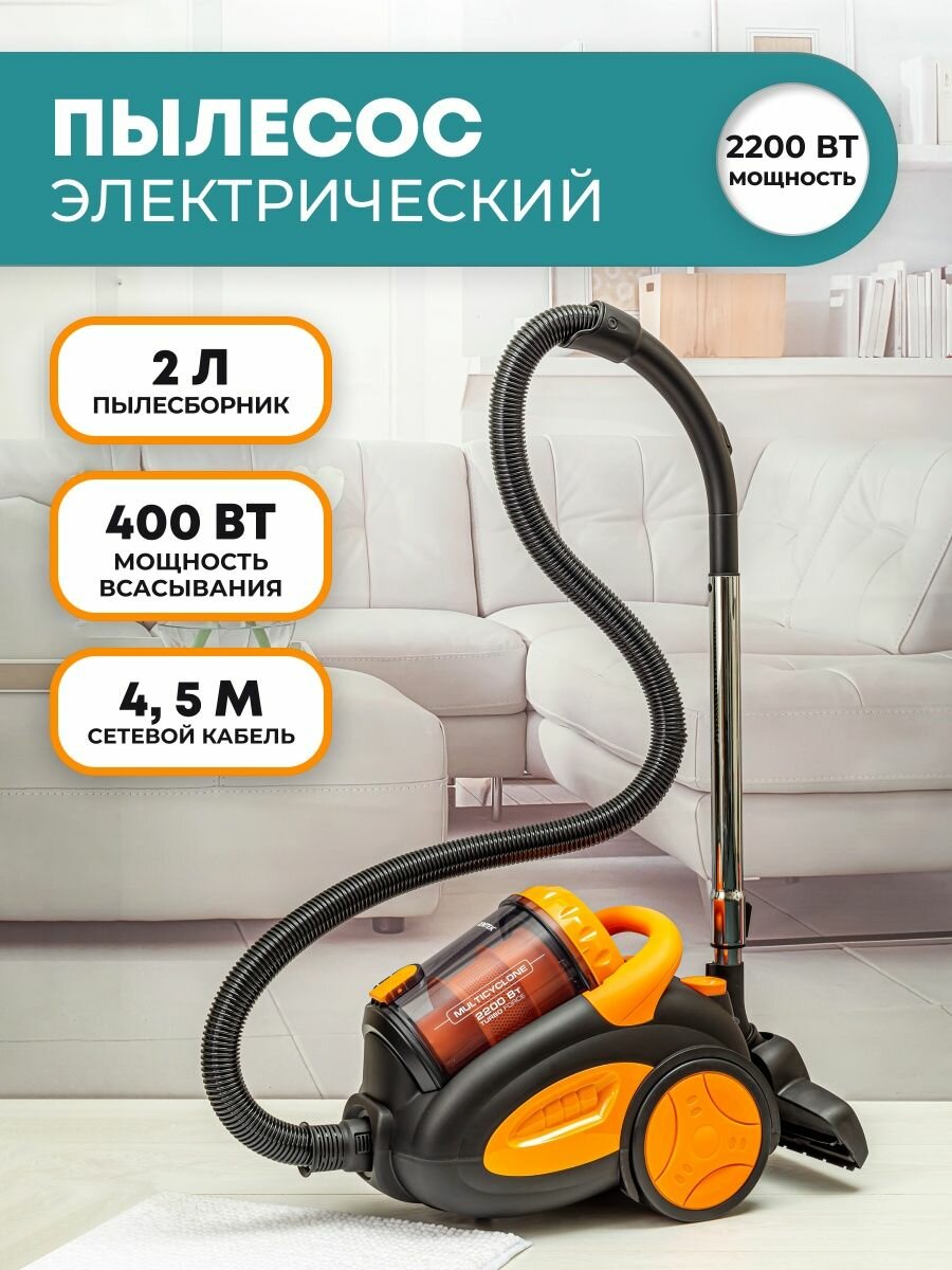 Пылесос для дома CT-2520 Orange безмешковый,мощность 2201 вт/400 вт