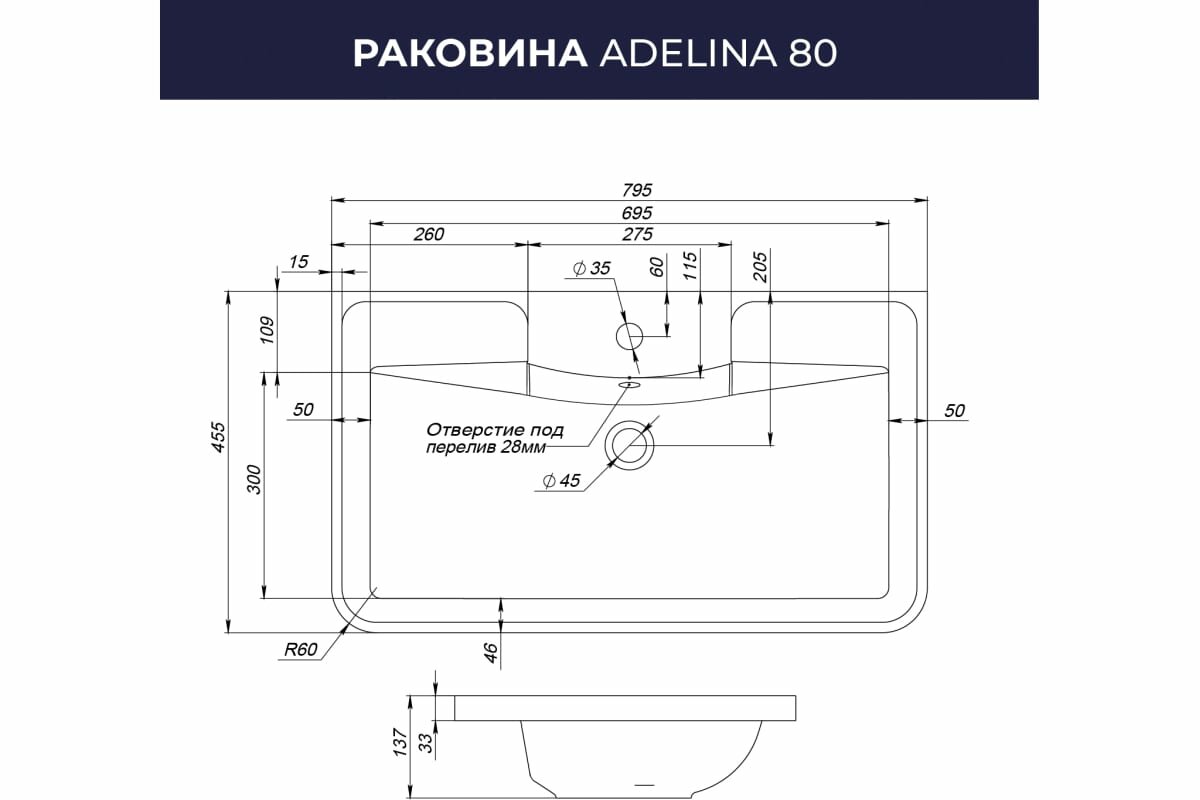 Раковина для ванной ITANA Adelina 80 795х455х137 интересное: